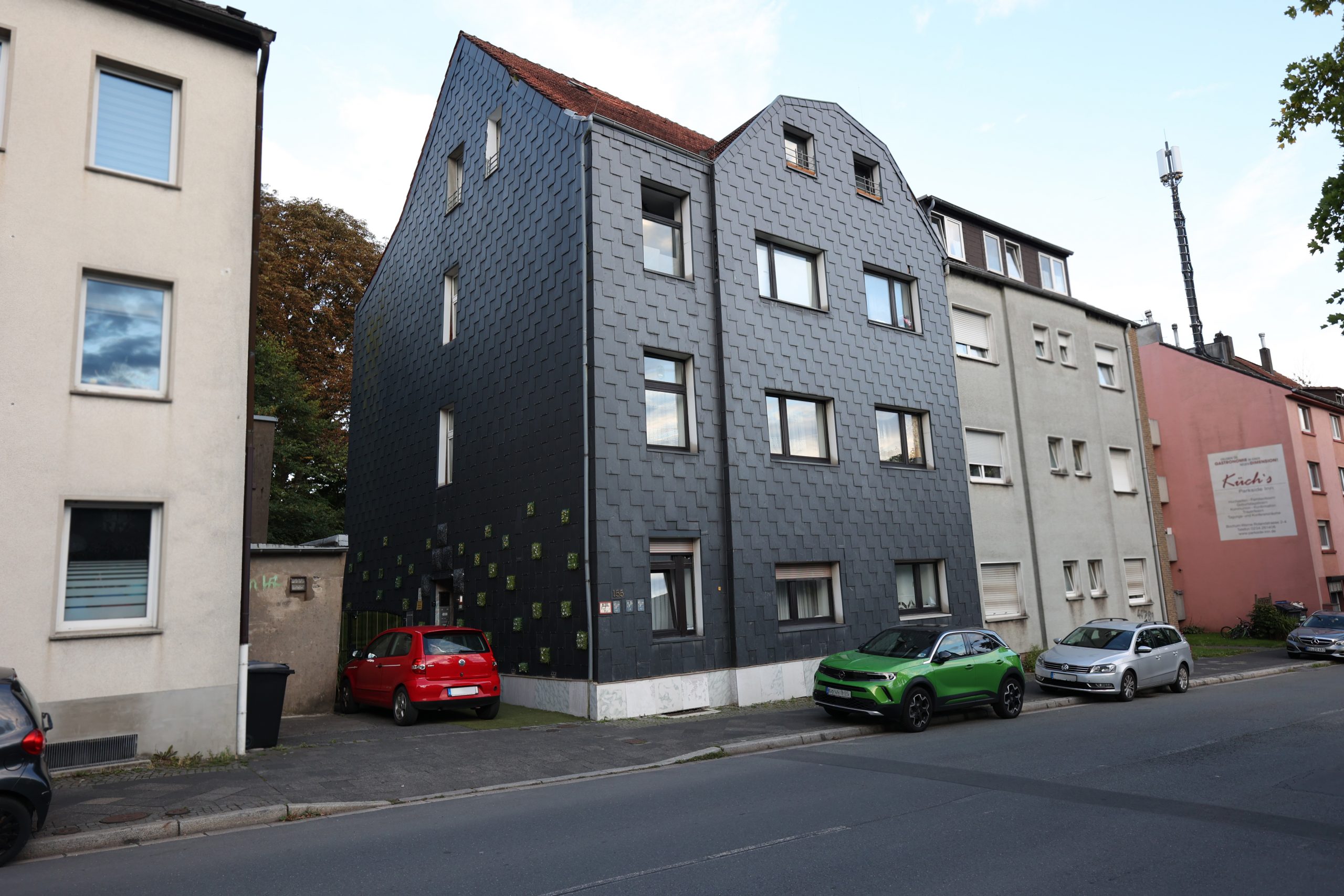 Dieses im Jahr 1954 erbaute Mehrfamilienhaus besticht durch seine großzügige Wohnfläche von insgesamt 355m² auf drei Etagen. Die aus Schieferplatten bestehende Fassade und charmante Bauweise verleihen dem Gebäude einen zeitlosen und klassischen Charme. Auf einem 420m² großen Grundstück gelegen, verfügt das Haus über drei Garagen, zwei Balkone, eine Terrasse und ist vollständig unterkellert.